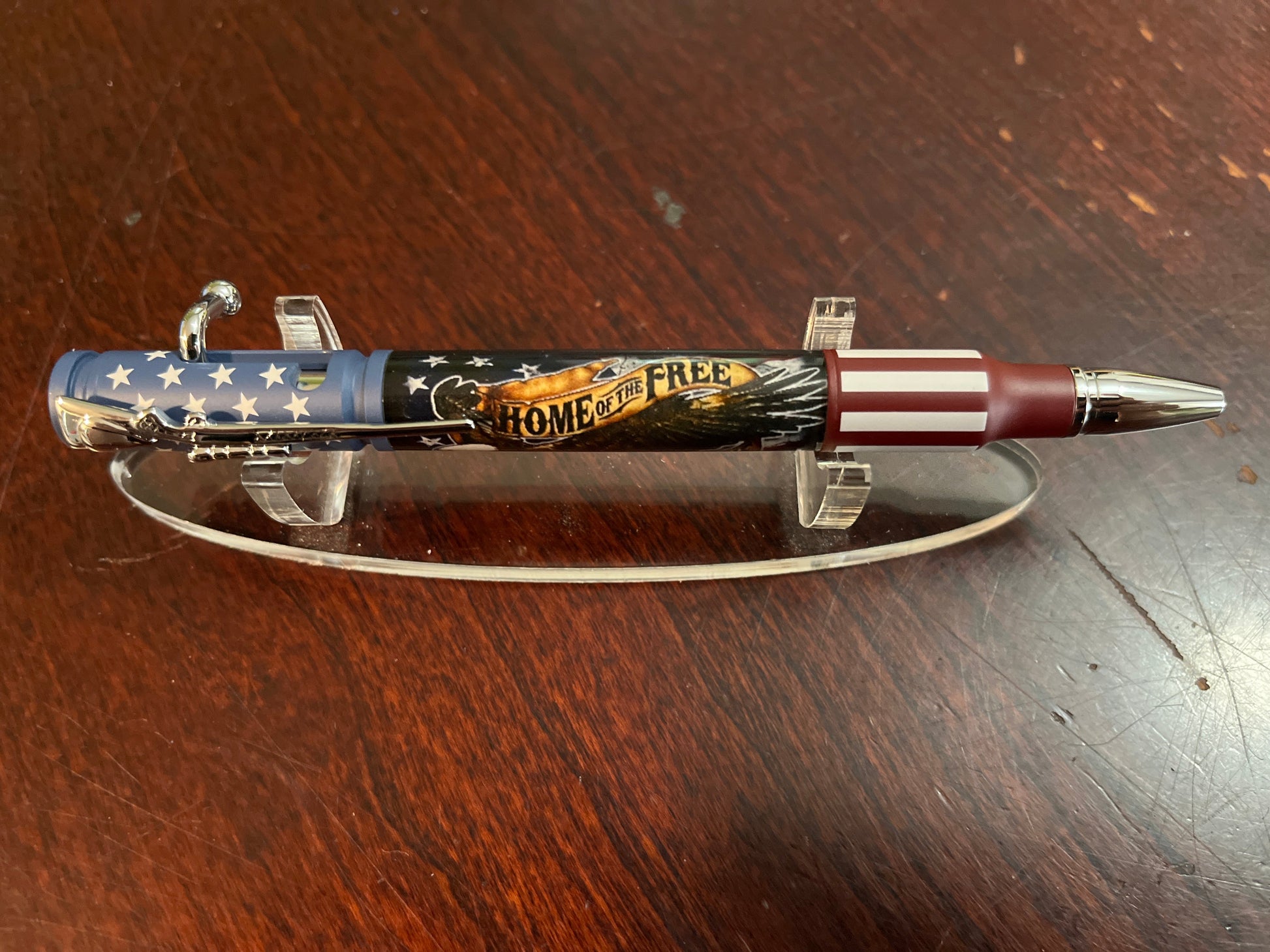 Bolt Action Pen Ceramic RW&B Flag Home of the Free