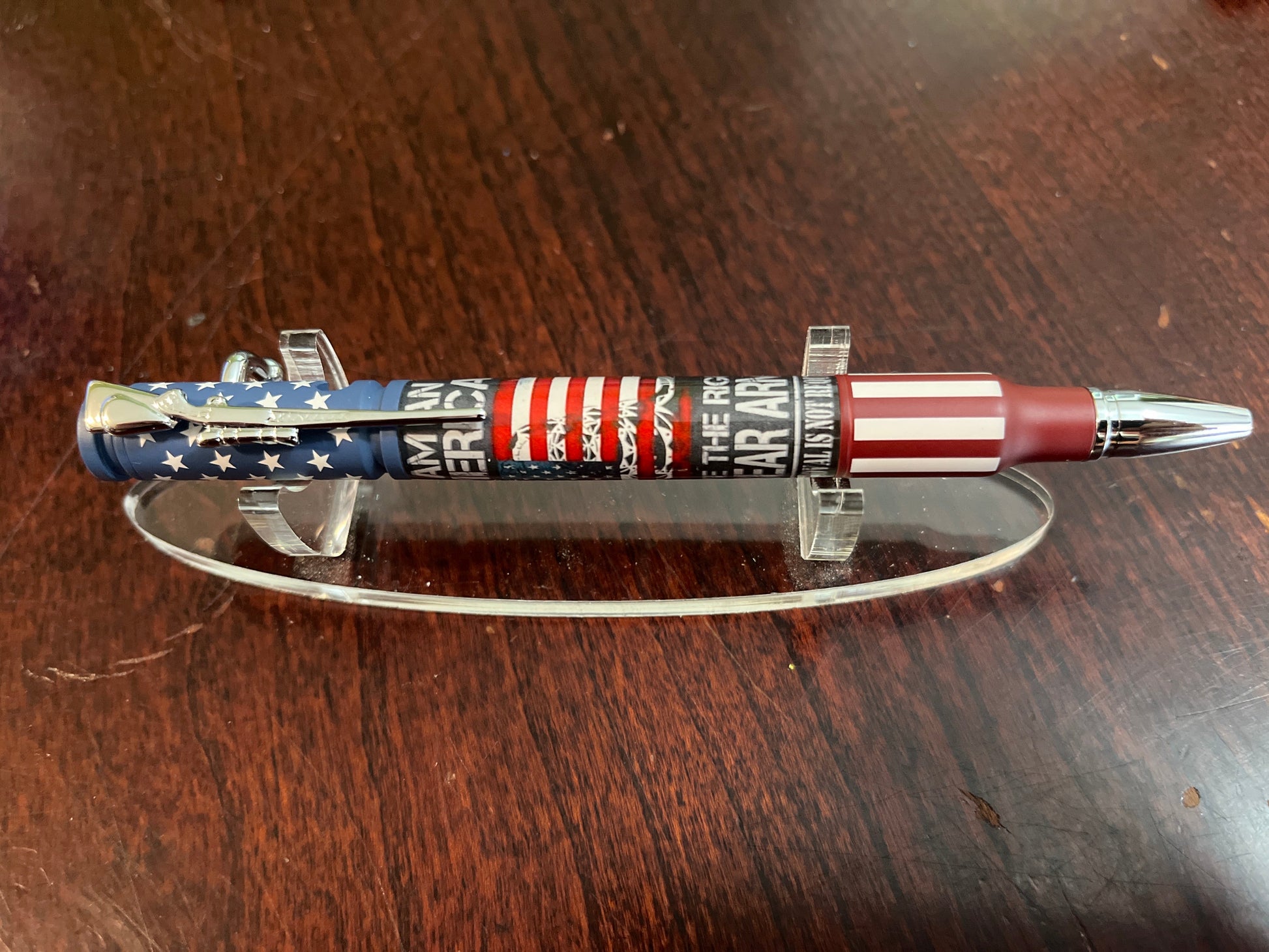 Bolt Action Pen Ceramic RW&B Flag Bear Arms