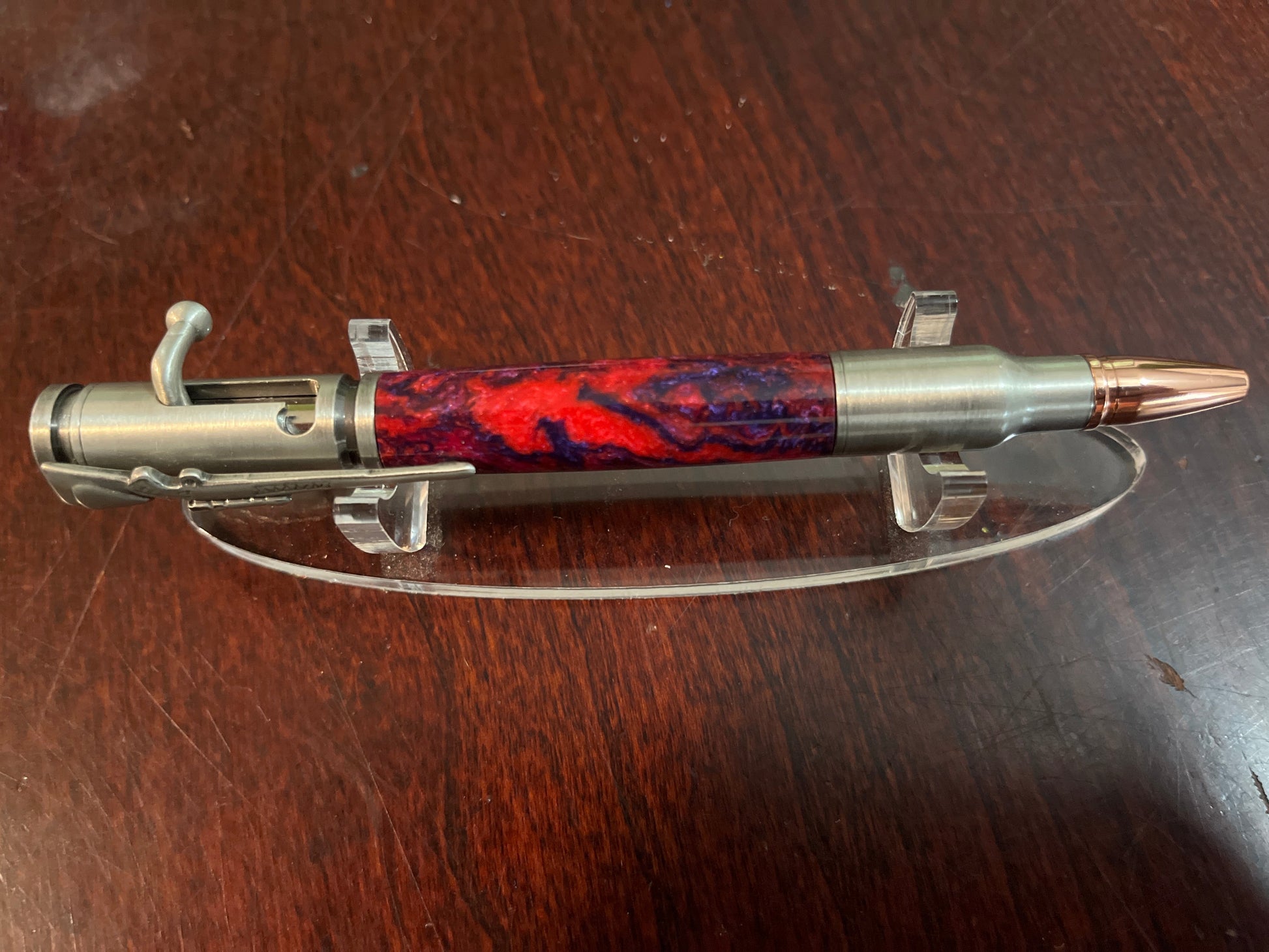 Bolt Action Pen Pewter Red Swirl